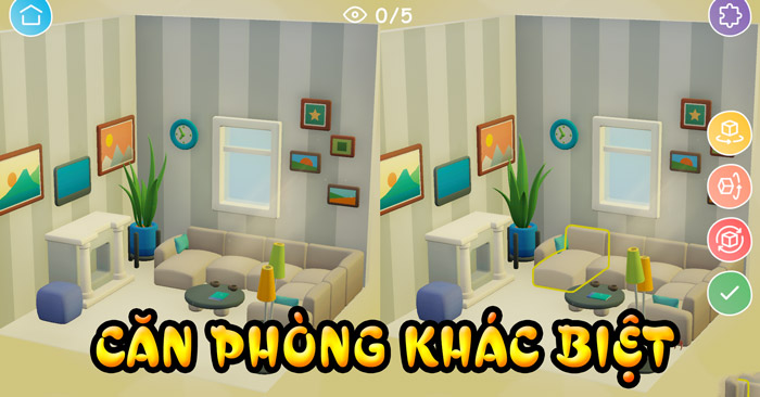 Căn phòng khác biệt - khám phá những căn phòng 3D ấm cúng và tìm ra những điểm chưa khớp để sắp xếp lại. Trong mỗi màn chơi, người chơi sẽ xoay và điều chỉnh các vật thể cho đến khi chúng về đúng vị trí. Không giới hạn thời gian, không áp lực, chỉ có âm nhạc nhẹ nhàng và những căn phòng tuyệt đẹp như phòng ngủ, phòng khách, gác xép hay cả nhà kính rực rỡ. Với cách chơi đơn giản, trực quan và đầy thư giãn, đây là trò chơi hoàn hảo để giải trí nhẹ nhàng, vừa rèn luyện sự tinh mắt, vừa mang lại cảm giác thoải mái sau những giờ học tập hay làm việc!