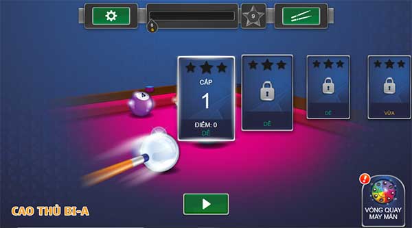 Cao thủ bi-a là game bida, game bi-a và game thể thao cực kỳ thú vị trên Game vui. Đến với Cao thủ bi-a, người chơi sẽ có cơ hội trải nghiệm bộ môn bi-a ngay trên màn hình của mình. Mỗi cấp độ, bạn sẽ có nhiệm dùng bi cái của mình đẩy tất cả số bóng màu còn lại xuống lỗ để giành chiến thắng. Tuy nhiên, bạn sẽ chỉ có một số lượt bắn nhất định. Khi lên cấp cao hơn, bạn có cơ hội mở khóa những cây cơ tốt hơn.