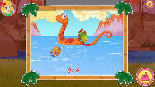 Chăm sóc khủng long - Princess Baby Pet Dino là một trong những game bạn gái, game công chúa rất hay và cực kỳ hấp dẫn trên Game Vui. Công chúa nhỏ của chúng ta có một chú khủng long con rất dễ thương. Trong game các bạn hãy giúp công chúa nhỏ chăm sóc cho chú khủng long. Đầu tiên hãy tắm rửa sạch sẽ cho nó rồi đi bắt những con cá trong hồ để cho chú khủng long ăn no bụng. Tiếp đó là khoảng thời gian vui chơi, sẽ có câu đố ghép hình và tìm những điểm khác biệt về dino. Cuối cùng hãy cùng công chúa nhỏ làm đẹp cho chú ta bằng những màu sắc, trang phục,... đi cùng.