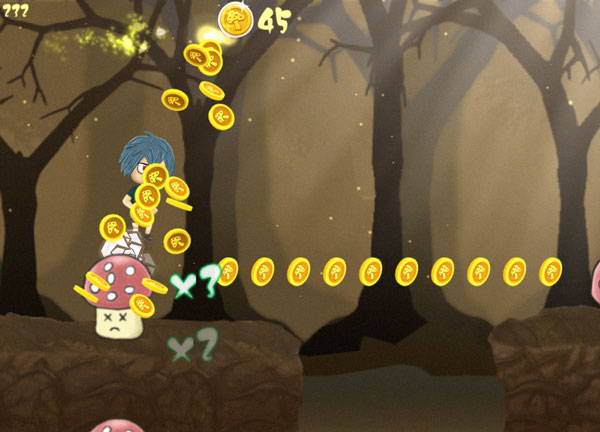 Sẽ có các loại vật cản trong game Chạy khỏi bóng tối như một số cây nấm độc như hình, hoặc vài con quái vật đá bay lơ lửng nữa. Bạn bấm chuột để nhảy lên và bấm 2 lần để thực hiện cú nhảy cao nhé.