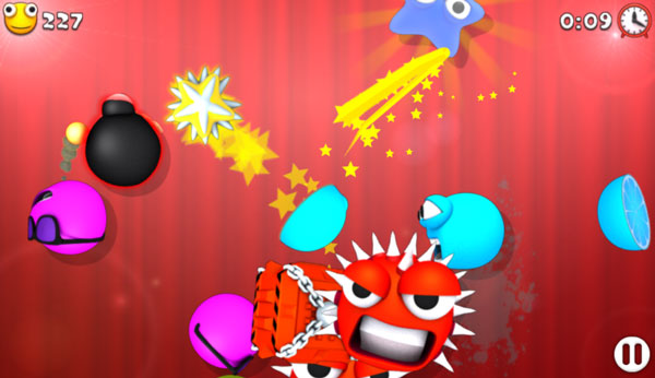 Chém bóng màu - Với lối chơi tương tự như trò Chém hoa quả - Fruit Ninja Online trên GameVui, nhiệm vụ chính của người chơi trong game Chém bóng màu là dùng chuột điều khiển lưỡi dao, lưỡi kiếm để chém những quả bóng, ngôi sao, chiếc hộp màu xuất hiện ngẫu nhiên trên bàn chơi nhiều lần nhất có thể. Lưu ý là không được chém vào quả bom đang bay, nếu không bạn sẽ bị trừ điểm HP hoặc trừ thời gian.