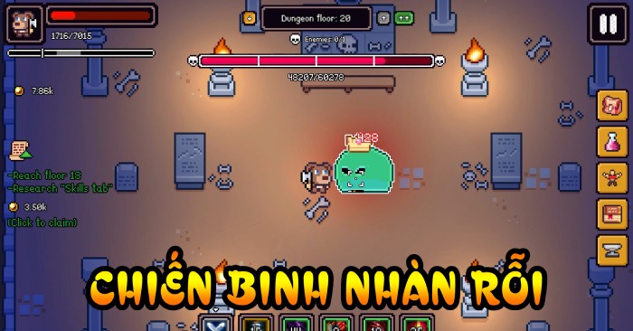 Chiến binh nhàn rỗi - là một game khám phá ngục tối theo phong cách nhàn rỗi với đồ họa pixel dễ thương. Người chơi vào vai một chiến binh chú gấu liều lĩnh, tiến vào những tầng hầm vô tận với nhiệm vụ để chiến đấu với các sinh vật nguy hiểm, thu thập chiến lợi phẩm và mở khóa vô số nâng cấp mạnh mẽ. Hãy tăng sức mạnh qua từng tầng và chinh phục 20 tầng ngục tối được cân bằng dành cho người mới. Đánh bại tên trùm đầu tiên và cảm nhận nhịp điệu cuốn hút của hành trình khám phá – nơi sức mạnh, chiến lược và sự kiên trì quyết định xem người chơi sẽ đi được bao xa!
