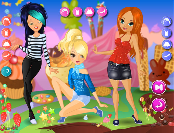 Cô gái kẹo ngọt là một trong những game thời trang hay và cực kỳ hấp dẫn trên Game Vui. Trong game ba cô gái nhỏ dễ thương đã đến vùng đất kẹo ngọt, nơi đó không chỉ có kẹo mà còn rất nhiều quần áo đẹp đáng yêu. Các bạn hãy giúp ba cô gái nhỏ dễ thương chọn ra những trang phục đẹp nhất khi đến với vùng đất này!