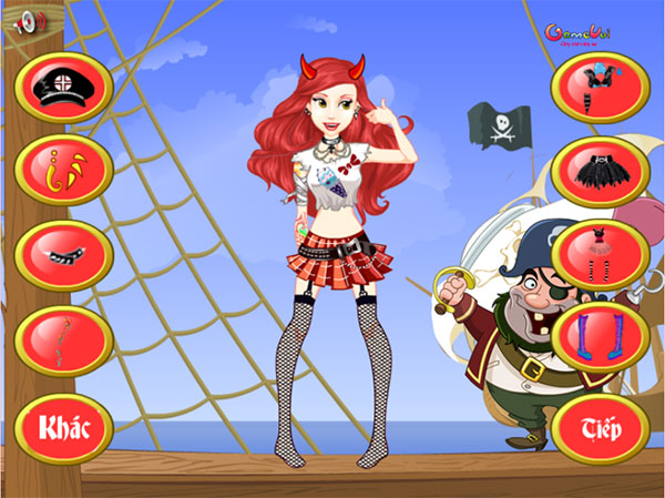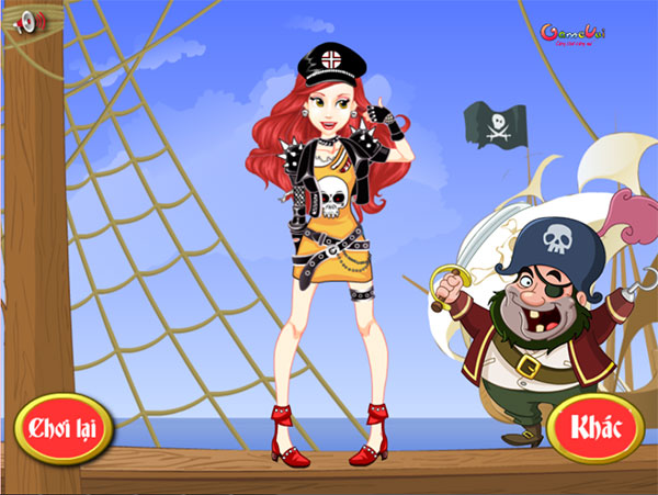 Công chúa cướp biển Ariel là một trong những game thời trang hay và cực kỳ hấp dẫn trên Game Vui. Trong game công chúa Ariel của chúng ta muốn thay đổi phong cách của cô thành cướp biển với những trang phục màu đen có những gai kim loại gắn lên. Các bạn hãy giúp cô ấy chọn ra những trang phục đẹp nhất, tốt nhất, phong cách nhất để làm sao cô thành một cướp biển xinh đẹp, cá tính.