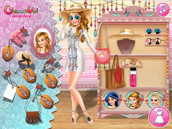 Công chúa: Trang phục bãi biển - Princesses Boho Beachwear Obsession là một trong những game bạn gái, game thời trang rất hay và cực kỳ hấp dẫn trên Game Vui. Ba nàng công chúa Elsa, Belle và Jasmine đang có chuyến đi du lịch tại một bãi biển đẹp và họ muốn mình trở nên xinh đẹp, cuốn hút. Trong game các bạn hãy giúp ba nàng công chúa lựa chọn ra những trang phục hoàn hảo và chọn ra những phụ kiện đi kèm để tạo ra những bộ đồ bơi đầy màu sắc.