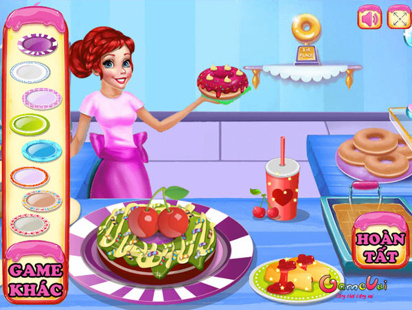 Cửa hàng bánh rán - Những chiếc bánh rán Donut luôn hấp dẫn vì chúng ngọt, thơm ngon và rất đẹp mắt nữa. Trong game Cửa hàng bánh rán, bạn hãy giúp công chúa làm bánh Donut để phục vụ, bán cho khách hàng nhé.