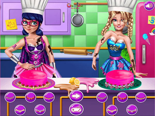 Cuộc thi nấu ăn - Super Hero Cooking Contest là một trong những game nấu ăn rất hay và cực kỳ hấp dẫn trên Game Vui. Trong game hai cô gái siêu anh hùng xinh đẹp của chúng ta đang cạnh tranh trong một cuộc thi nấu ăn. Các bạn hãy giúp hai cô gái lựa chọn công thức làm bánh, cùng làm và trang trí sao cho cả hai chiếc bánh đều ngon và đẹp.