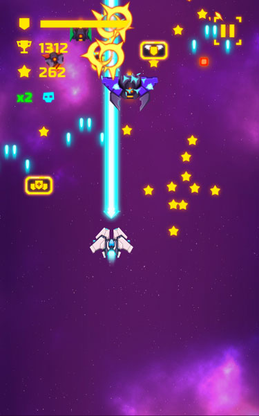 Đại chiến tàu vũ trụ - Điều khiển chiếc tàu chiến đấu với sứ mạng bảo vệ Trái Đất khỏi quân địch ngoài không gian, đó là bối cảnh chính của game Đại chiến tàu vũ trụ trên GameVui. Để chơi game, bạn bấm chuột và di chuyển để điều khiển con tàu chiến, thu thập những vật phẩm cần thiết để tăng sức mạnh. Lưu ý là không nên nhặt vật phẩm hình đầu lâu màu đỏ da cam nhé.