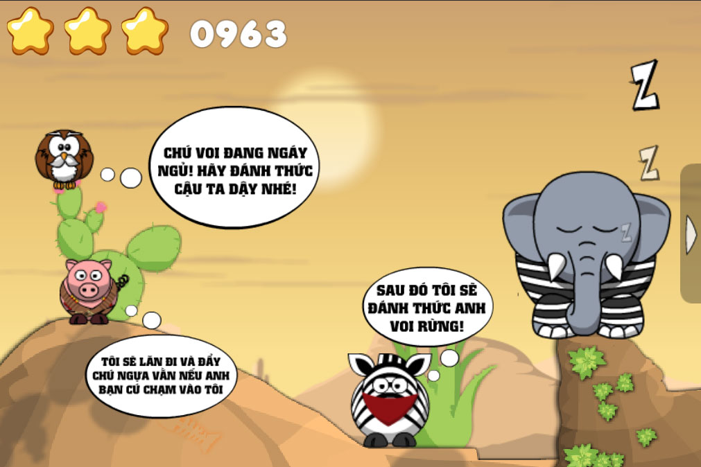 Các loài vật khác nhau trong rừng sẽ có nhiều cách khác nhau để đánh thức chú voi của GameVui đang ngủ quên!