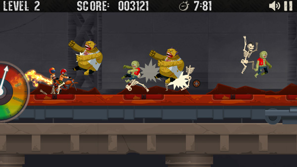 Đua moto diệt Zombie - Trò chơi phiêu lưu kết hợp với thể thao tốc độ, với cặp đôi nhân vật chinh điều khiển chiếc moto địa hình, lần lượt vượt qua các chướng ngại vật, thực hiện những động tác nhào lộn và dùng tuyệt chiêu để diệt những con zombie đang muốn cản đường họ.
