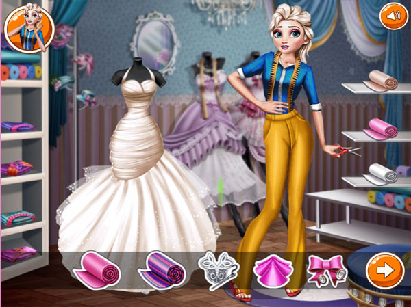 Elsa thiết kế áo cưới - Ngày hôm nay, nàng công chúa Elsa sẽ trổ tài thiết kế các mẫu váy, áo cưới dành cho các dịp lễ đặc biệt. Nhiệm vụ chính của bạn trong game Công chúa Elsa thiết kế áo cưới này là giúp nàng chọn các chi tiết, họa tiết, mẫu vải... phù hợp để tạo nên chiếc váy đẹp nhất nhé.