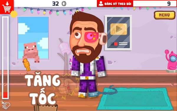Fan cuồng YouTube - Trò chơi văn phòng, giải trí với tình tiết đơn giản mà hấp dẫn. Trong game, nhiệm vụ chính của bạn là đóng vai 1 người Fan cuồng nhiệt, hâm mộ các ngôi sao YouTube đến mức muốn hành hạ và vượt qua họ. Bạn sẽ phải dùng những vật phẩm hỗ trợ để lần lượt xử lý các ngôi sao YouTube, để nhận được các lượt đăng ký và tiền dùng để nâng cấp vật phẩm. Trong game, bạn dùng chuột để điều khiển.