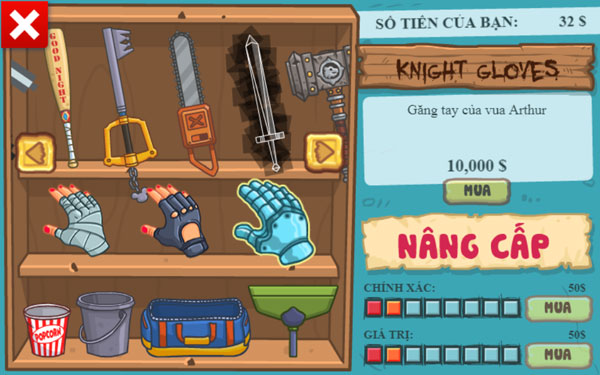 Các bạn nên nâng cấp thuộc tính Chính xác và Giá trị lên Max để dễ dàng kiếm tiền hơn.