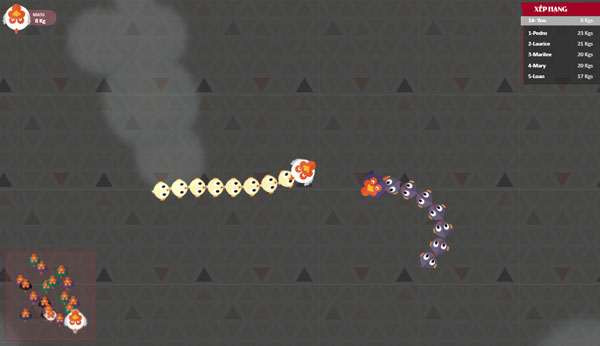 Gà nổi giận - Game xả stress tại GameVui với lối chơi rất giống với trò Rắn săn mồi - Slither nhiều người chơi. Trong game Gà nổi giận, bạn có nhiệm vụ điều khiển chú gà đi thu thập những quả trứng hoặc tìm cách tiêu diệt người chơi khác bằng cách dụ đối thủ đâm đầu vào phần thân để ghi điểm.