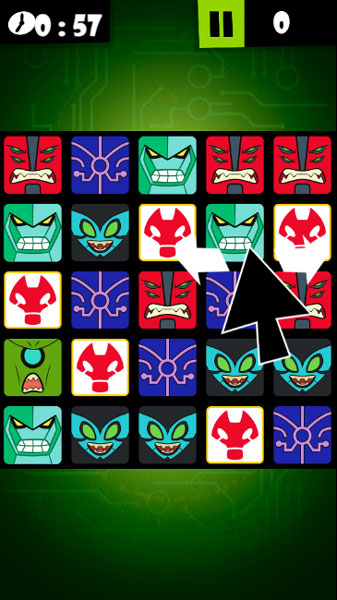 Ghép hình Ben10 - Game tiếp theo về nhân vật hoạt hình Ben10, bên cạnh khả năng biến hình đa dạng và đầy sức mạnh. Trong game Ghép hình Ben10 yêu cầu người chơi phải nhanh tay tìm và nối các hình Ben10 giống nhau lại để ghi điểm. Thời gian của thử thách là 60 giây và bạn có thể ghi được bao nhiêu điểm?