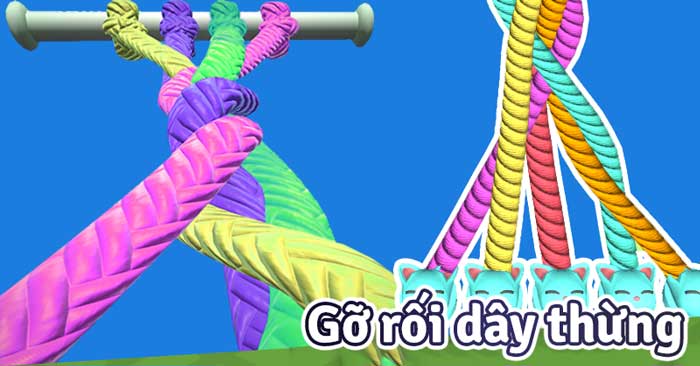 Gỡ rối dây thừng - Đây là một trò chơi giải đố đầy thử thách nhưng cực kỳ thú vị xoay quanh việc tháo gỡ các sợi dây thừng đang quấn vào nhau. Nhiệm vụ của bạn là tháo gỡ những sợi dây rối và sắp xếp chúng theo đúng thứ tự để hoàn thành thử thách. Trò chơi Gỡ rối dây thừng này có nhiều nhiều cấp độ khác nhau, và trong chế độ thử thách, các bạn cần giải câu đố trong số lượt nhất định. Và khi có quá nhiều dây thừng thì người chơi hãy tập trung vào 1 sợi dây trước, tháo gỡ nó, rồi tiếp tục với những sợi dây còn lại!