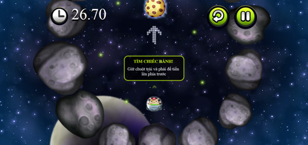 Bạn hãy cố gắng tìm được đường đến chiếc bánh sớm nhất có thể, không được va chạm vào các tảng thiên thạch trên bản đồ.