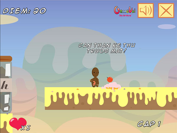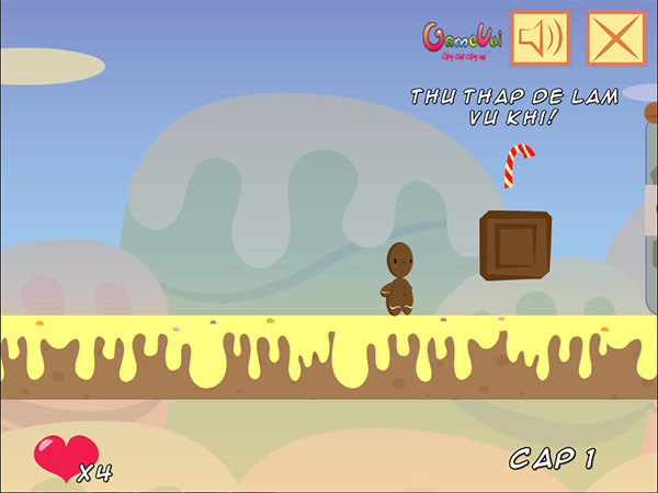 Hành trình Gingerman là một trong những game phiêu lưu hay và cực kỳ hấp dẫn trên Game Vui. Một đêm khi đang say trong giấc ngủ Gingerman đã bị trộm đột nhập căn nhà và lấy đi kho báu. Gingerman đã quyết tâm lên đường để tìm kho báu bị mất, trong game các bạn hãy giúp Gingerman thực hiện cuộc hành trình. Hãy thu thập vũ khí kẹo để đánh bại kẻ thù cũng như thu thập kẹo để ghi điểm!