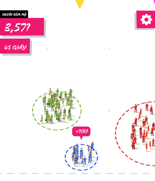 Hội những người hâm mộ - Bạn muốn trở thành người nổi tiếng trên mạng xã hội, trên Facebook, Zalo... Hãy thử sức với game giải trí về Fan hâm mộ trên GameVui. Cách chơi game Hội những người hâm mộ rất đơn giản, bạn chỉ việc bấm chuột để di chuyển nhân vật người nổi tiếng đến những nơi đông người để thu hút sự chú ý của họ, và khi họ bước vào vòng tròn ảnh hưởng của bạn, họ sẽ chính thức trở thành fan cuồng của bạn. Game có 2 chế độ là chơi 1 mình và chơi với máy.