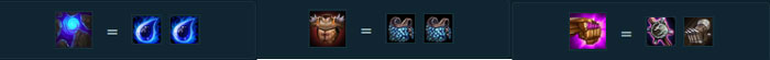 Riven, carry của team nên trang bị hợp lý sẽ là một trang bị chống chịu kèm một trang bị phép thuật như Giáp Gai và một Găng Bảo Thạch. Và không thể thiếu Bùa Xanh nữa rồi để cô nàng có thể spam skill.