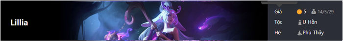 - Lillia sử dụng một bài hát ru ma thuật, khiến một số kẻ địch có Máu cao nhất hiện tại rơi vào trạng thái ngủ trong 3,5 giây. Kẻ địch sẽ thức tỉnh nếu chúng chịu một số sát thương trong khi ngủ, gây thêm sát thương phép.