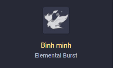 - Trong 12s sau khi sử dụng Dawn, Diluc nhận thêm 20% dame Pyro và đòn đánh thường/charged đều gây sát thương Pyro.