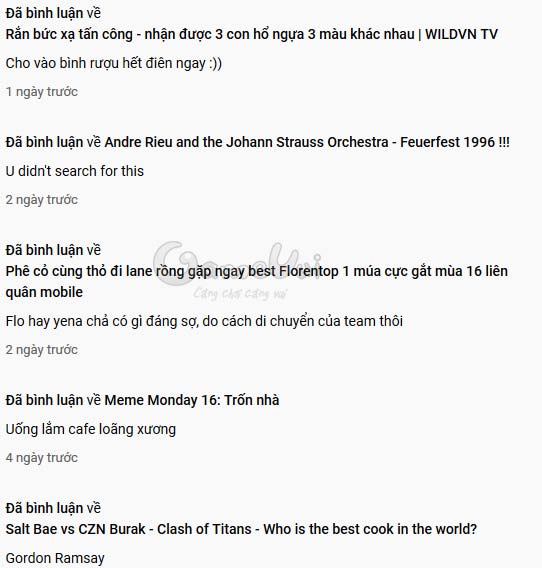 Để xem lại các bình luận bạn đã comment lên toàn bộ video YouTube, hãy chọn Bình luận như trên, và kết quả là đây: