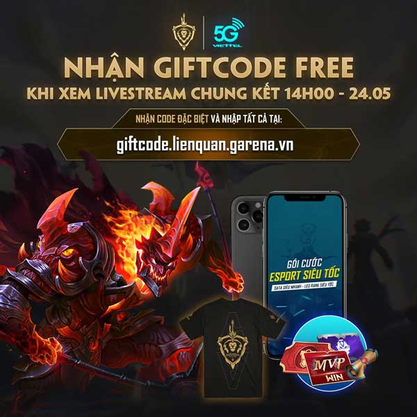 Sự kiện trận Chung kết Đấu Trường Danh Vọng mùa xuân 2020 sắp diễn ra vào ngày 24/05 tới đây thu hút rất nhiều sự chú ý của cộng đồng game thủ chuyên nghiệp cũng như người chơi Liên Quân Mobile tại Việt Nam. Và dưới đây là cách nhận 10 Giftcode miễn phí khi các bạn xem trận Chung kết Viettel 5G Đấu trường danh vọng 2020 sắp tới.