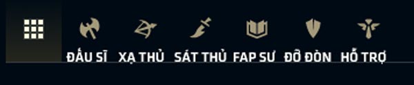 Các hạng mục trang bị được phân chia hàng ngang theo từng chất tướng như: Đấu sĩ, xạ thủ, sát thủ, pháp sư, đỡ đòn và trợ thủ.