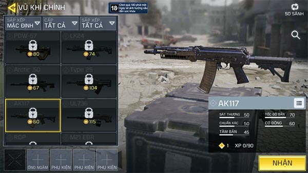 1 thành viên tiếp theo trong gia đình sún trường tấn công là AK-117, các chỉ số chỉ loanh quanh mức trung bình nhưng bù lại tốc độ bắn rất cao, do vậy sẽ bù là lượng sát thương vừa đủ ở khoảng cách xa, và khi kẻ địch đến gần thì chỉ số sát thương sẽ trở nên khổng lồ. Hầu hết những khẩu súng trường này các bạn sẽ nhận được miễn phí nếu chăm chỉ cày và làm nhiệm vụ.