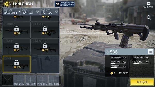 Nếu bạn là bình tĩnh trong mọi tình huống thì nên chọn khẩu S36 này, vì đơn giản nó có lượng sát thương tốt và tốc độ bắn rất cao. Còn những thông số khác thì ở dưới mức trung bình, do vậy nó chỉ phù hợp với những người chơi bình tĩnh, lối chơi cẩn thận và yêu cầu độ chính xác cao.