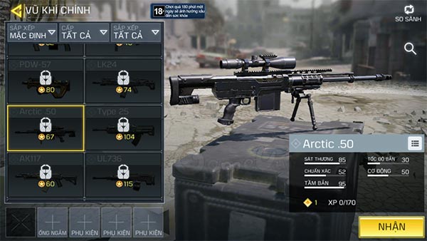 Nếu bạn cảm thấy DLQ 33 có phần classic và "cổ kính", hãy chuyển sang sử dụng Arctic .50 luôn và ngay. Đơn giản vì ngoại hình của Arctic 50 có phần hiện đại hơn, tốc độ bắn nhanh hơn, gắn thêm phụ kiện như ống ngắm Scope và băng đạn mở rộng, khẩu sniper này sẽ không ngán bất cứ kẻ địch nào dù ở bất kỳ khoảng cách nào đâu bạn nhé!