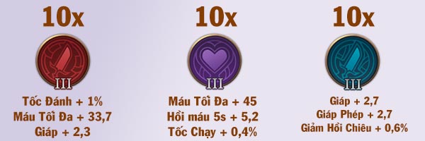 - Ngọc đỏ: Tốc đánh + Máu tối đa + Giáp.