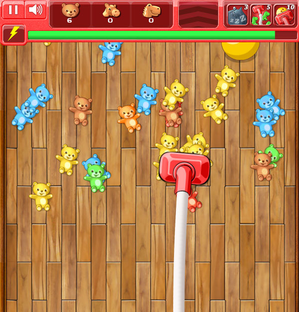 Hút bụi - Game vui về công việc hút bụi cũng như các vật cản khác khỏi sàn nhà. Trong game Hút bụi này, nhiệm vụ chính của các bạn là điều khiển chiếc máy hút bụi và quét sạch tất cả các miếng đồ chơi hình gấu, ngựa hoặc khủng long để làm sạch ngôi nhà của chúng ta. Tuy nhiên có những vật cản với kích cỡ khá lớn như quả bóng thì không nền hút, vì chúng sẽ làm bạn mất đi thời gian và năng lượng.