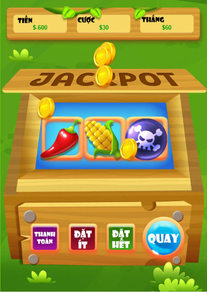 Jackpot rau củ quả - Game văn phòng giải trí vui vẻ trên GameVui. Trong game, bạn không cần bận tâm đến tỉ lệ thắng thua vì tất cả những gì bạn cần làm là chọn số xu đặt cược rồi bấm nút Quay để xem giải thưởng nhận được sẽ như thế nào.