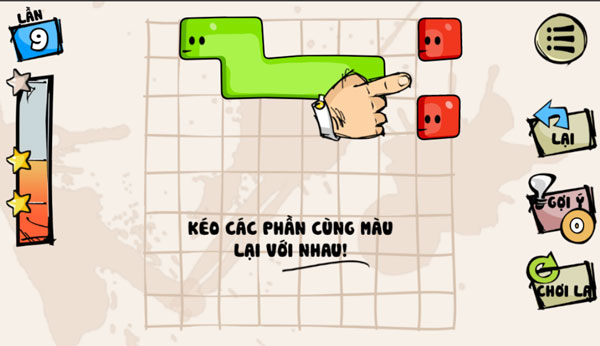 Trong game Kẹo thạch Jelly này, các bạn dùng chuột để nối các phần kẹo thạch cùng màu lại với nhau. Bạn cố gắng đạt đủ 3 sao bằng cách giải quyết trong số lần di chuyển cho phép nhé.
