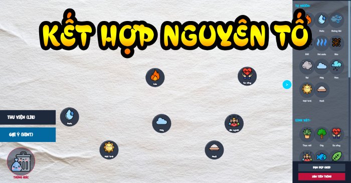 Kết hợp nguyên tố - là trò chơi sáng tạo khám phá, nơi người chơi có nhiệm vụ tạo ra những nguyên tố và vật phẩm mới đầy bất ngờ. Lối chơi đơn giản, thử ghép hai nguyên tố có liên quan với nhau để mở khóa thêm nhiều kết quả độc đáo, từ những thứ quen thuộc đến những sáng tạo thú vị. Càng khám phá, danh sách nguyên tố càng mở rộng, đòi hỏi người chơi phải suy nghĩ logic và thử nghiệm nhiều cách kết hợp khác nhau. Nếu gặp khó khăn, người chơi có thể sử dụng gợi ý để tiếp tục hành trình sáng tạo. Hãy tham gia và xem người chơi có thể mở khóa được bao nhiêu nguyên tố!