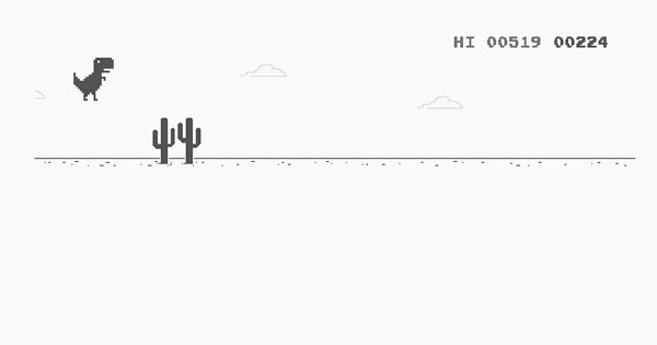 Khủng long chạy bộ - Bạn có biết đây là chú khủng long hay xuất hiện trên trình duyệt Google Chrome mỗi khi mất mạng hay không? Giờ đây thì bạn có thể thoải mái giúp chú khủng long T-Rex chạy bộ (hay còn gọi là Chrome Dino, Dinosaur, T-Rex Dinosaur...) trên máy tính cả khi mất mạng và có mạng nhé. Nhiệm vụ chính của game T-Rex chạy bộ rất đơn giản, bấm phím Space để giúp chú khủng long nhảy lên tránh khỏi cây xương rồng hoặc những chú khủng long bay ngược chiều khác, cố gắng ghi nhiều điểm nhất có thể.