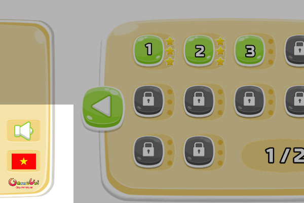 Để tắt âm thanh hoặc thay đổi ngôn ngữ, các bạn ra ngoài Menu chính và bấm vào biểu tượng lá cờ để chọn.