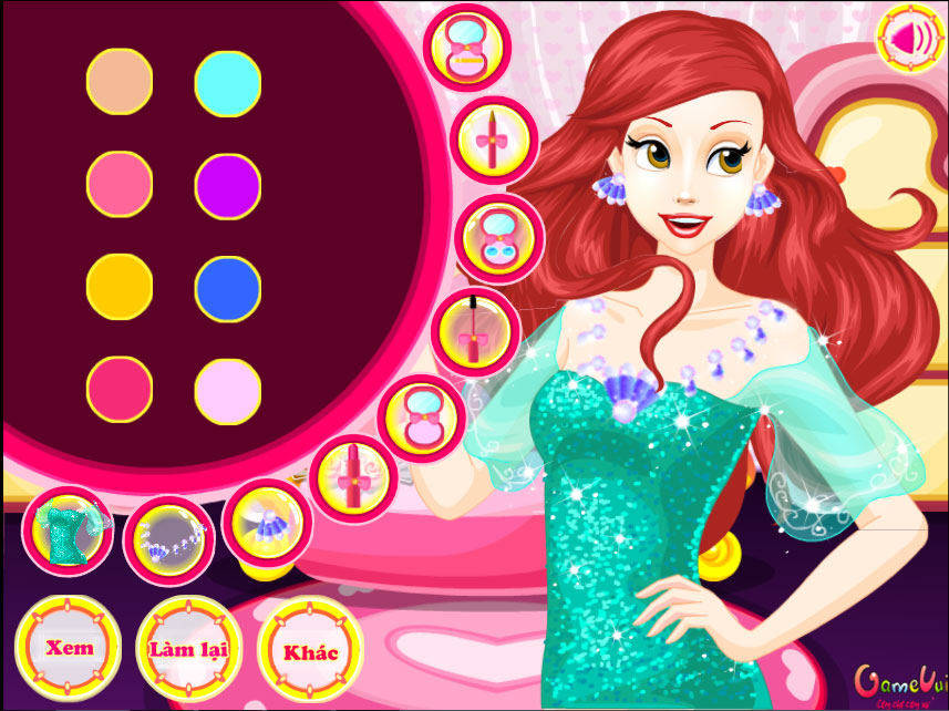 Lễ cưới của Ariel là một trong những game làm tóc, game trang điểm - làm đẹp hay và cực kỳ hấp dẫn trên Game Vui. Trong game Ariel của chúng ta sắp kết hôn và cô muốn chọn một kiểu tóc cưới thật đẹp. Hãy sử dụng tài năng của bạn để thiết kế cho cô công chúa các kiểu tóc cưới đẹp nhất và đừng quên sử dụng các công cụ chuyên nghiệp để làm cho mái tóc cô ấy quyến rũ và lãng mạn.