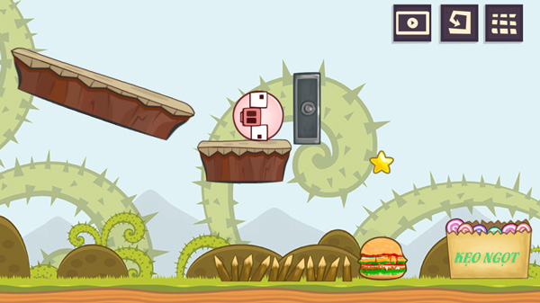 Lợn ăn kẹo - Hãy giúp chú heo con màu hồng bé nhỏ, dễ thương thu thập đủ 3 ngôi sao mỗi level và nhảy vào bịch kẹo ngọt hấp dẫn trên bản đồ. Mỗi 1 lần bạn bấm chuột thì chú heo sẽ biến từ hình vuông thành hình tròn và ngược lại, đây cũng là cách để chú heo con vượt qua những chướng ngại vật trên bản đồ.