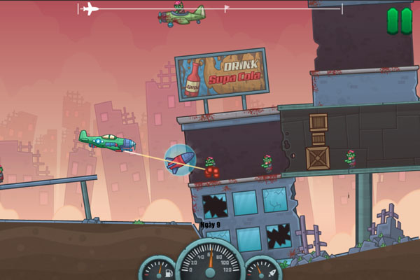 Máy bay diệt Zombie - Game diệt Zombie hay và hấp dẫn trên GameVui. Lũ thây ma Zombie hung hãn đang tấn công thành phố và muốn xâm chiếm trái đất, nhiệm vụ của người chơi là điều khiển chiếc máy bay chiến đấu để tiêu diệt những tên Zombie nguy hiểm. Game Máy bay diệt Zombie này có nhiều điểm giống với trò Xe tải diệt Zombie - Flash, bạn nhận nhiệm vụ tàn sát Zombie, kiếm xu và nâng cấp các thành phần, bộ phận trên máy bay. Cố gắng hoàn thành hết các thử thách nhanh nhất có thể!