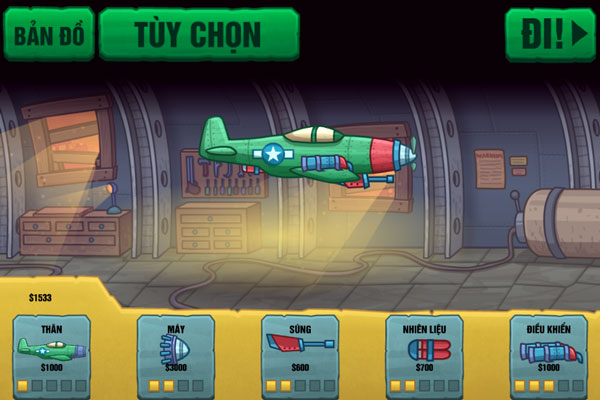 Các bạn có đủ tiền xu hãy tiến hành nâng cấp sức mạnh cho máy bay chiến đấu.
