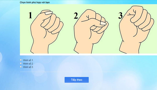 Nắm đấm của bạn cho thấy điều gì? - Tính cách của con người, của một ai đó có thể dễ dàng biểu hiện qua những cử chỉ, hành động đơn giản nhất. Với bài trắc nghiệm nho nhỏ của GameVui, bạn hãy thử xem có đúng hay không nhé chỉ bằng cách nắm bàn tay lại thành hình nắm đấm.