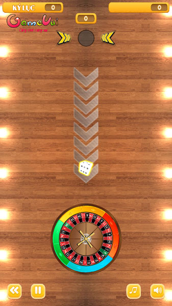 Như hình ví dụ trên, màu của viên xúc xắc là màu vàng thì bạn canh sẽ ném vào phần cạnh có màu vàng của vòng tròn đang quay là sẽ ghi điểm.