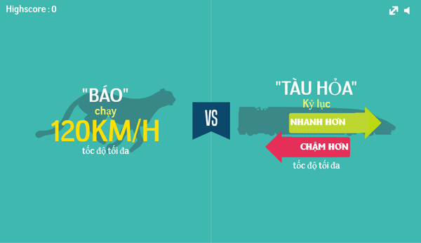 Trong trò chơi, game sẽ đưa ra sự so sánh giữa 2 đối tượng bất kỳ, nhiệm vụ của bạn là chọn đáp án nhanh hơn hoặc chậm hơn ở cửa sổ bên phải. Nếu trả lời đúng bạn sẽ tiếp tục, còn trả lời sai thì bạn phải chơi lại từ đầu!