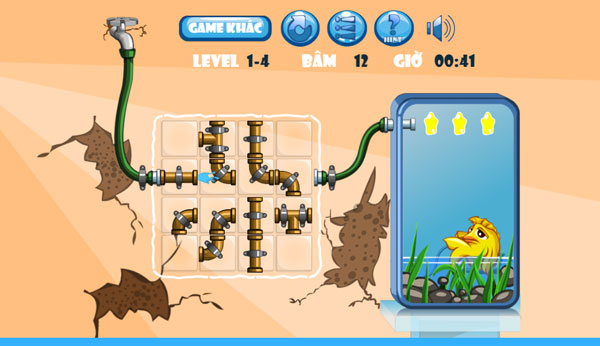 Nối vòi bơm nước - Game trí tuệ về chủ đề nối ống dẫn nước quen thuộc trên GameVui. Lối chơi game Nối vòi bơm nước rất đơn giản, bạn chỉ cần nối được 2 đầu ống nước thông suốt với nhau, tạo được đường liền để nước chảy vào chiếc bình có chứa chú cá vàng là hoàn thành level.