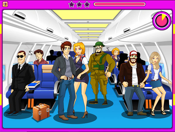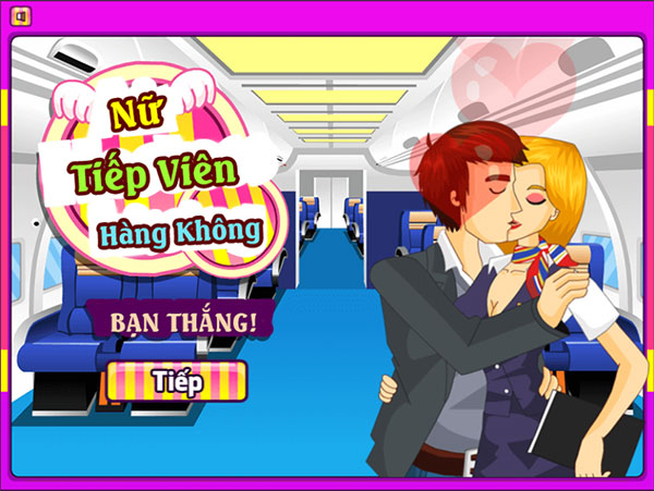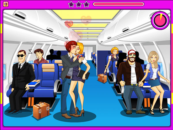 Nữ tiếp viên hàng không là một game hôn lén hết sức dễ thương trên Game vui dành cho các bạn nữ. Khi tham gia Nữ tiếp viên hàng không, bạn sẽ có nhiệm vụ giúp cô nàng tiếp viên xinh đẹp thể hiện tình cảm với người yêu của mình bằng những nụ hôn trên máy bay, nhà ga và xe bus. Tuy nhiên, họ không muốn người khác phát hiện. Dấu hiệu nhận biết có người lạ nhìn là dấu chấm than vàng. Bạn hãy giúp họ trao nhau những nụ hôn nồng cháy.