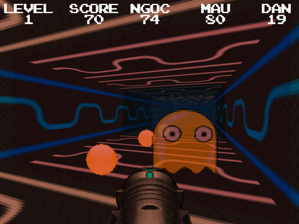 Pacman bắn súng - Trò chơi Pacman kinh điển đã rất quen thuộc với tuổi thơ chúng ta, nhưng lần này anh chàng Pacman sẽ xuất hiện dưới góc nhìn của người chơi theo kiểu 2,5D. Game được phát triển dựa trên nền tảng WebGL nên rất nhẹ, dễ chơi và hấp dẫn. Nhiệm vụ chính của bạn là đóng vai Pacman, di chuyển trên bản đồ, ăn các viên kẹo và dùng súng tiêu diệt các hồn ma xuất hiện bất ngờ trên bản đồ. Điểm khó của trò Pacman bắn súng này là dưới góc nhìn người chơi thứ nhất, bạn sẽ rất khó để hình dung được bản đồ sẽ đi như thế nào với những level cao.