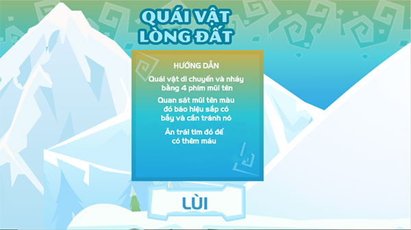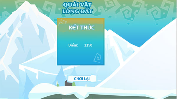 Quái vật lòng đất là một game hành động pha lẫn kinh dị cực kỳ thú vị trên Game vui. Truyền thuyết kể rằng, ở khu vực dãy Himaylay có 1 con quái vật bí ẩn đang ẩn náu. Nó sống dưới lòng đất và bất thình lình sẽ bay lên khỏi mặt đất để tấn công người và phương tiện đang di chuyển trên đường. Bạn hãy giúp con quái vật này ghi càng nhiều điểm càng tốt.